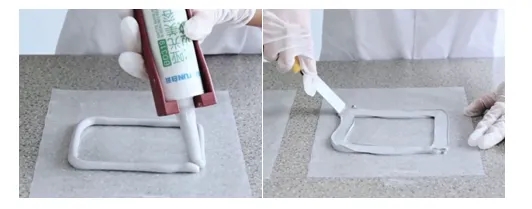 图2 制样示意:将密封胶在薄膜上打成口字型,并用铲刀刮平