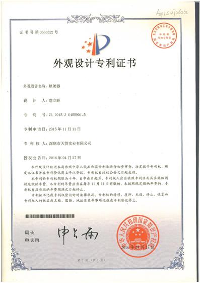 锁闭器-外观设计专利证 |