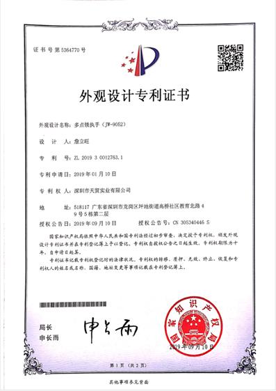 多点锁执手-外观设计专利证书 |