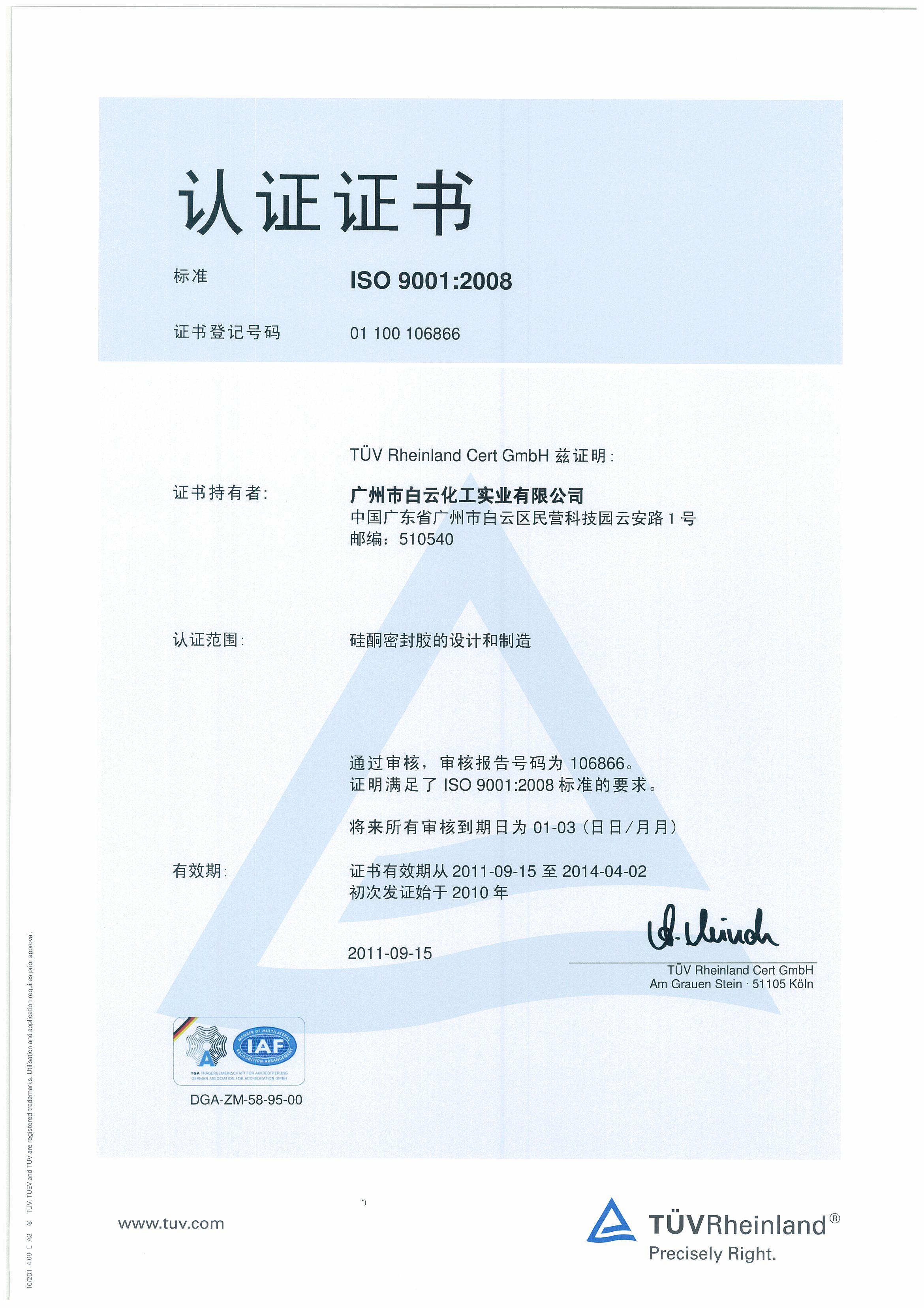 ISO9001体系最新证书