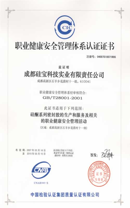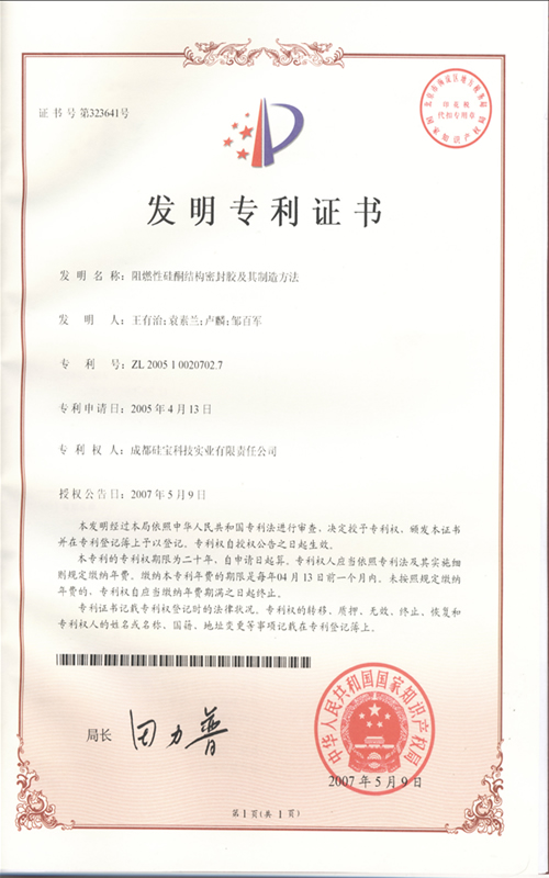 中性硅酮石材密封胶发明专利证书 |