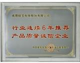 行业连续6年推荐产品质量诚信企业 |