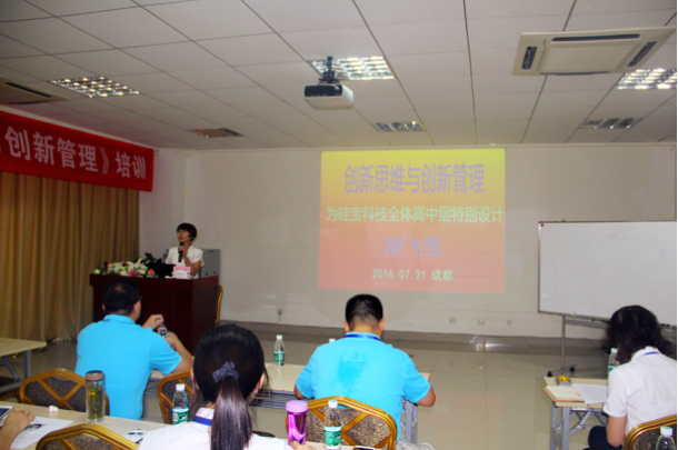 为全面提升企业经营管理人才素质,不断增强企业核心竞争力,努力打造创新型经营管理团队,有效助推企业转型升级,成都硅宝科技股份有限公司于7月21日举办主题培训班,对70余名企业中高层管理人员进行专题培训。本次培训邀请到北京大学中国教育与人力资源研究中心特聘专家,管理创新培训专家、工程师、副教授胡飞雪,为我司培训班学员作了主题为“创新思维与创新管理”的培训。