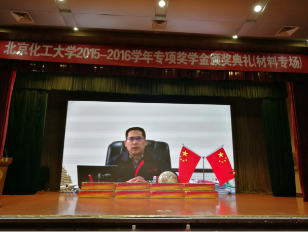 12月10日,“北京化工大学2015-2016学年专项奖学金签约暨颁奖典礼(材料专场)”,在北京化工大学科学会堂隆重举行。北京化工大学校长助理宋来新,北京化工大学材料科学与工程学院院长张立群、党委书记赵静等院校领导出席典礼。32家设奖单位或个人,产学研合作单位代表,以及教授代表,获奖学生500余人参加此次典礼。成都硅宝科技股份有限公司办公室主任袁胜丽应邀出席颁奖典礼。