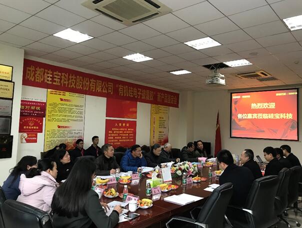 2018年12月21日,成都硅宝科技股份有限公司“有机硅电子披覆胶”顺利通过了由四川省经济与信息化厅组织的四川省新产品鉴定。鉴定委员会由来自中国科学院成都有机化学研究所、中国电子科技集团公司第十研究所、电子科技大学、四川大学、成都理工大学、四川省橡胶协会、国家合成树脂质量监督检测中心的7名专家、教授组成。硅宝科技总裁李步春、副总经理黄强出席鉴定会,李步春总裁代表公司对与会领导、专家及嘉宾表示热烈欢迎。