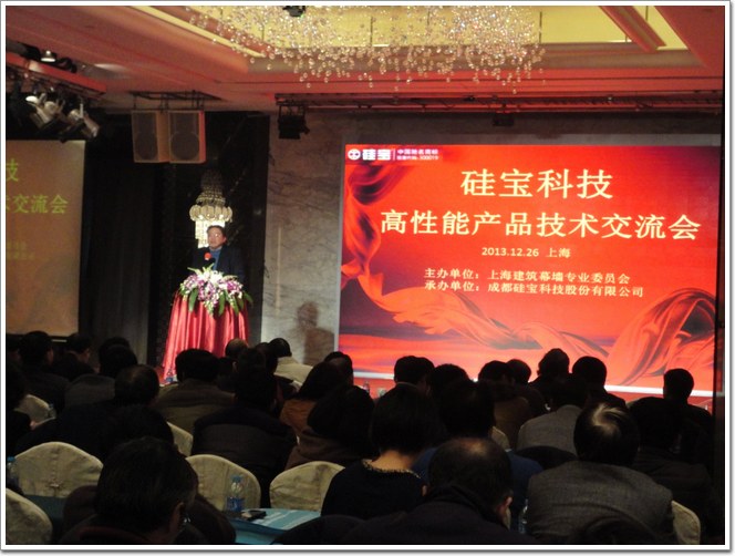 为帮助上海建筑幕墙行业会员单位更好地了解幕墙行业新材料、新工艺、新标准,加强企业间的交流与合作,增进沟通和友谊,2013年12月26日,由上海建筑装饰装修行业协会搭建平台,“硅宝高性能产品技术交流会”在上海金钱豹大酒店成功召开。上海建筑装饰装修行业协会幕墙专委会主任刘海韵、常务副会长忻国樑等领导出席会议并作重要讲话,硅宝科技副总经理章巍在会上做主题演讲,来自上海建筑幕墙行业的专家学者、施工单位、材料企业和主管部门及行业协会领导、相关媒体逾300人出席本会。