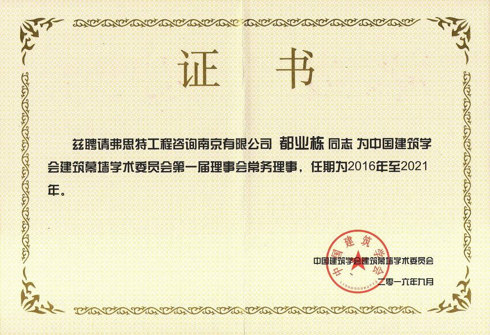 中国建筑学会建筑幕墙委员会副理事长