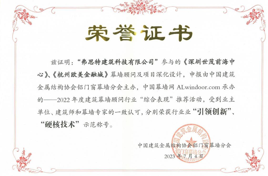 2022年建筑幕墙顾问行业-“引领创新”、“硬核技术”示范称号