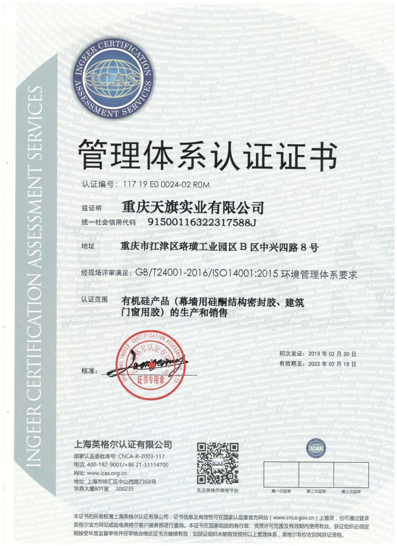 证书名称: 环境管理体系