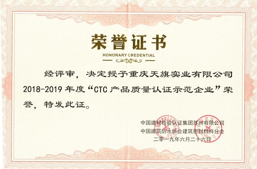 证书名称: CTC产品质量认证示范企业证书