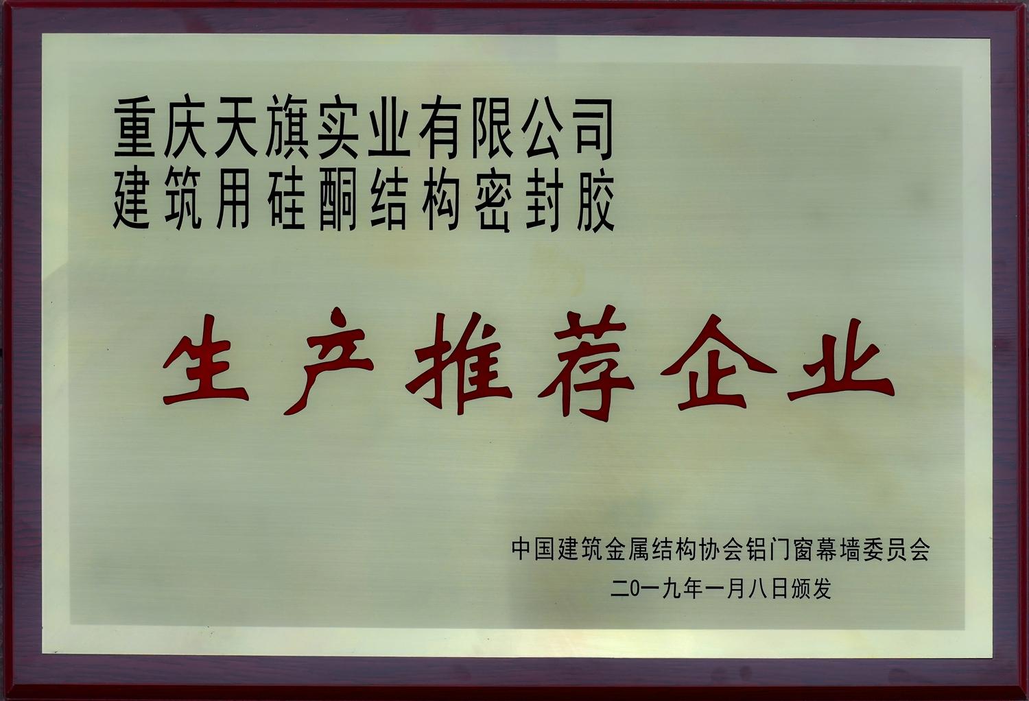 证书名称: 生产推荐企业