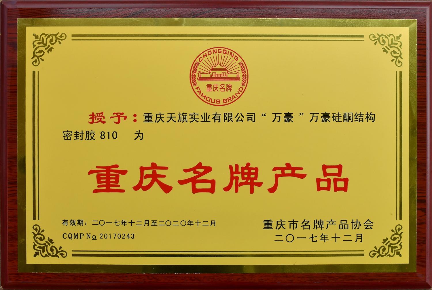 证书名称: 重庆名牌产品