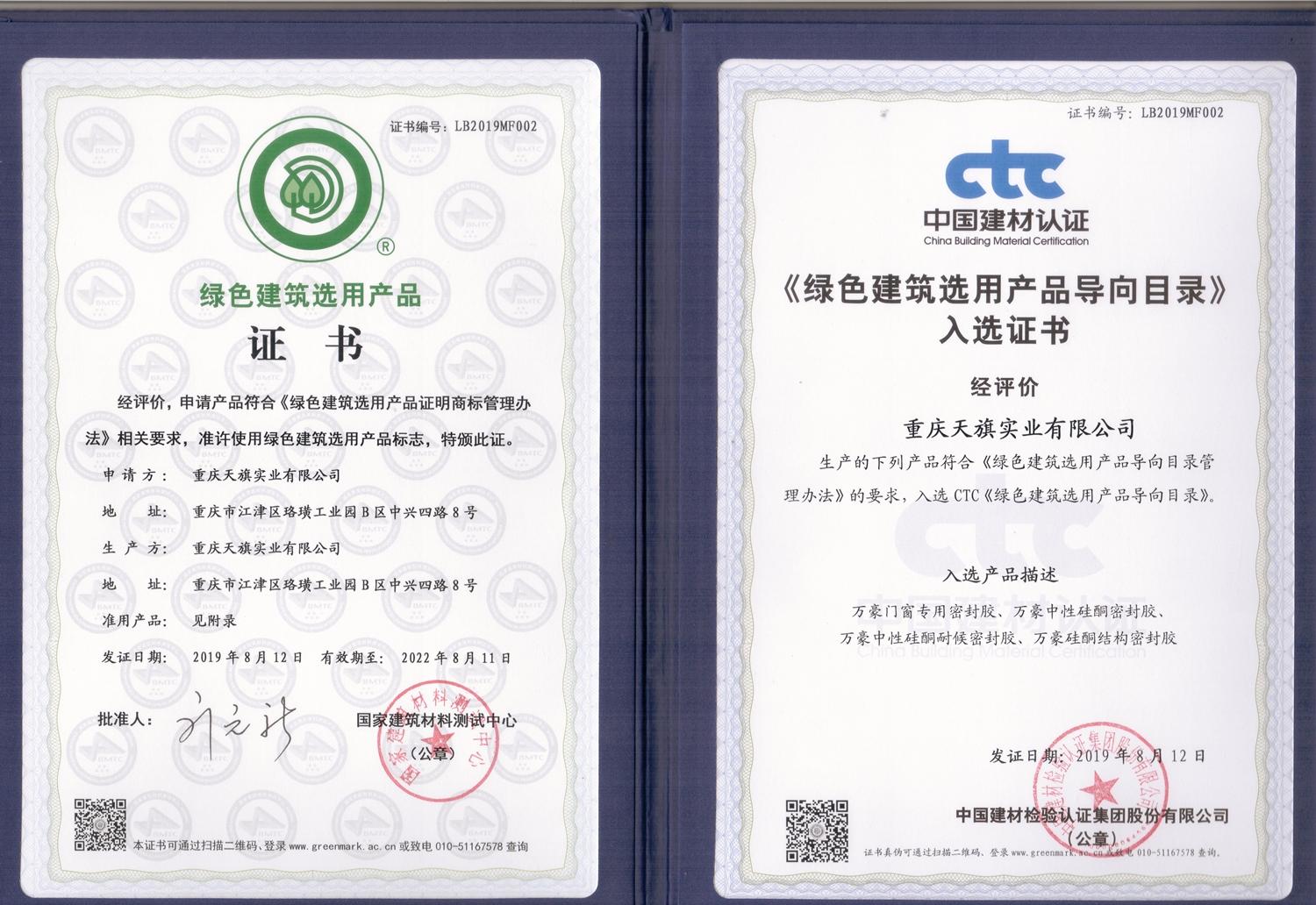 证书名称: 绿色建筑选用产品