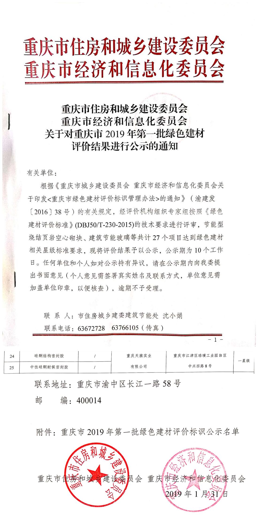 证书名称: 重庆市2019年第一批绿色建材