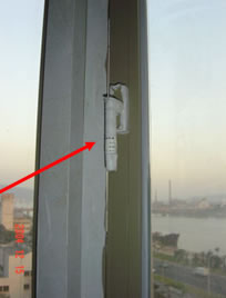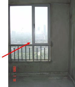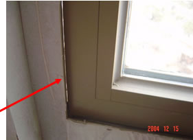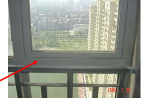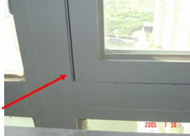 案例二:将承载能力低、质量较差的滑撑用在外平开窗上,造成窗扇关闭后,窗扇执手侧掉角严重,使窗扇与窗框四周不能达到合理的密封配合,也将无法保证整个窗的气密性能。