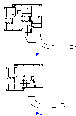 图2是将传动部件放在隔热条的内侧,执手的拨叉部分不需要穿过隔热条,没有损伤隔热条,两个独立腔体之间没有形成冷桥;型材隔热条形成环行连续隔断,保证了断桥的作用,使整窗的节能设计得到了有效发挥.