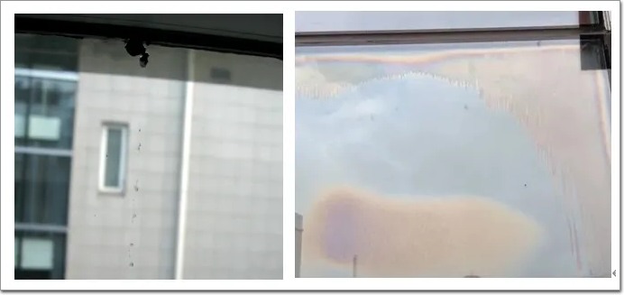 图3 中空玻璃丁基胶溶解和彩虹现象