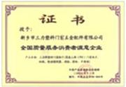 全国质量服务消费者满意企业 |