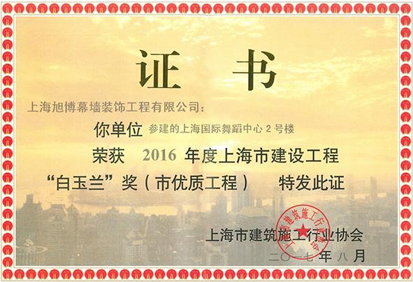 2016年度上海市建设工程白玉兰奖 |