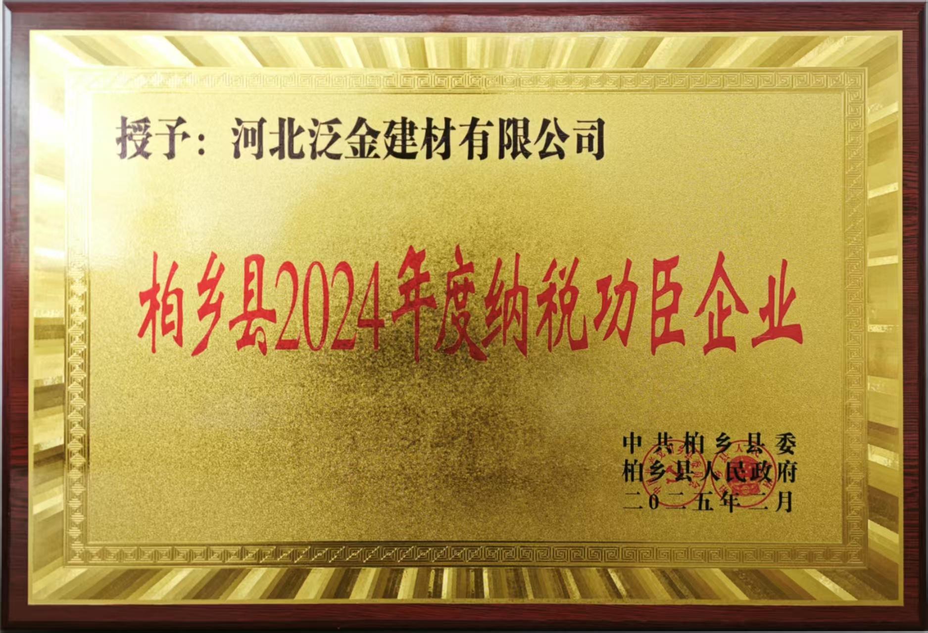 柏乡县2024年度纳税功臣企业