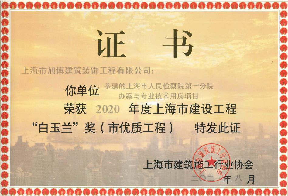 2020年度上海市建设工程白玉兰奖
