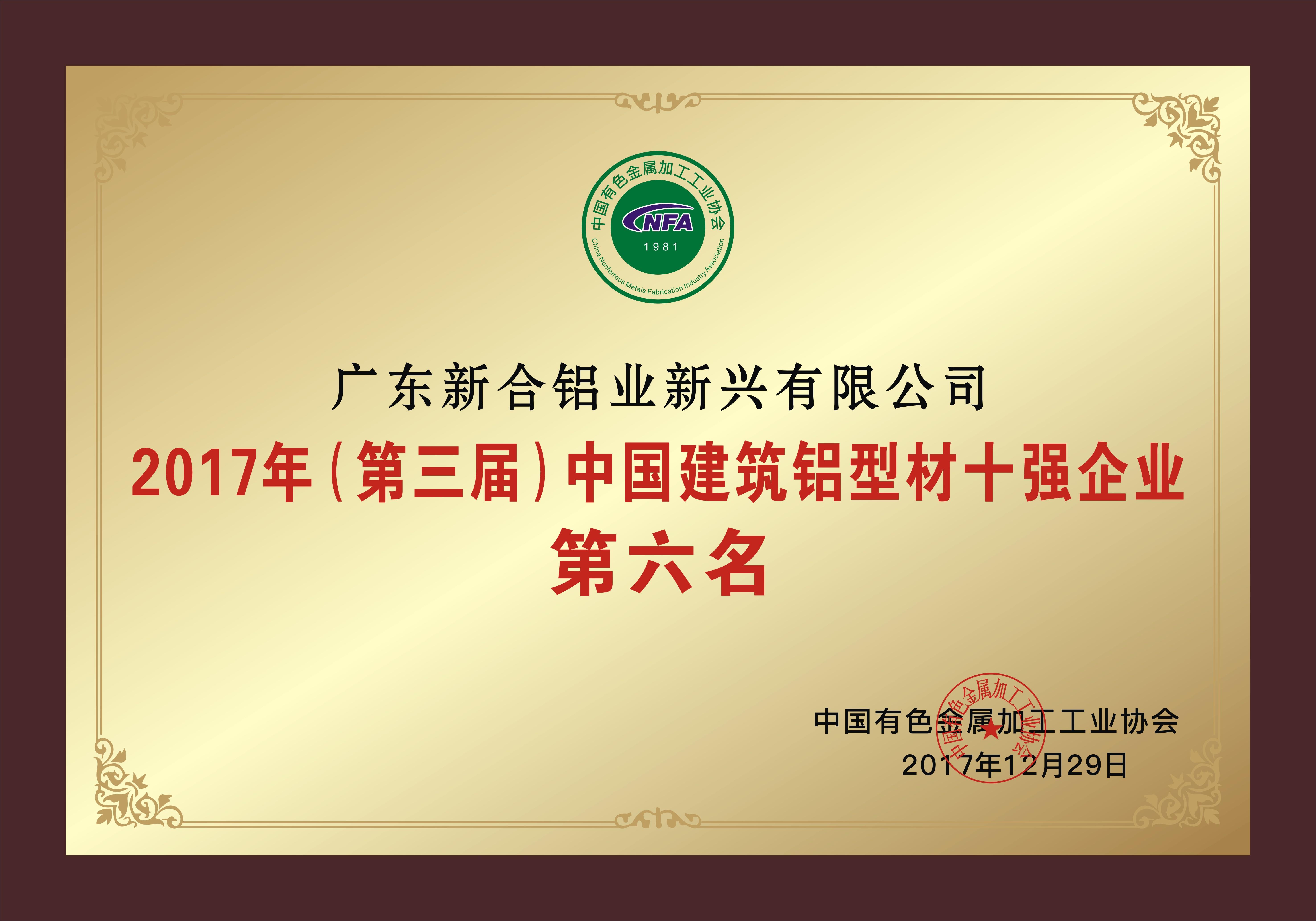 中国建筑铝型材十强企业