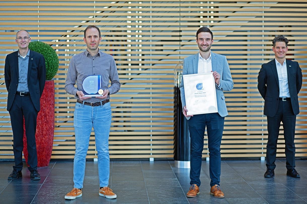 十分荣幸获得ZVSHK奖(从左至右):来自慧鱼尼龙业务部负责人RainerFischer、慧鱼尼龙业务部产品经理ChristianFrey、慧鱼尼龙业务部全球产品经理MarcelMei以及慧鱼产品和研发部负责人OliverGeibig博士共同出席了颁奖典礼。