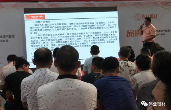 掌握产品优势,提升企业核心竞争力。集团研发中心负责人李福明带来秋季新品门窗产品知识,从基础的门窗型材配件开始,由浅入深,到最后每种产品系列的型材颜色、拉手滑轮、性能优势等,逐一进行了讲解说明,确保伟业伙伴们能掌握竞争优势,快速占领市场份额。