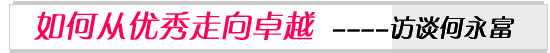 何:传统的家族企业观念很难适应现代企业的发展了。之江作为市场中的一个企业,想要走长,走远,必须在企业和员工之间有一种真正的共同追求,通过合作的理念,搭建一种更可靠,更具有活力的合作伙伴关系,所以,我和所有的员工之间都是合作伙伴。而如何处理和管理好中高层干部,一直是众多企业管理功课中很重要的一环,就像在球场上一样,总会有一些明星队员,他们具有很强的个人能力和技能,但往往也具有很特别的个性。对待这一类的明星队员,我们要认识到企业需要这类明星球员,他们突出的个人能力是企业创新能力的保证,但一定要有足够的耐心和正确的引导,给他们一个宽松的环境,让其能力能够在符合企业利益的情况下得到充分的发挥。 |