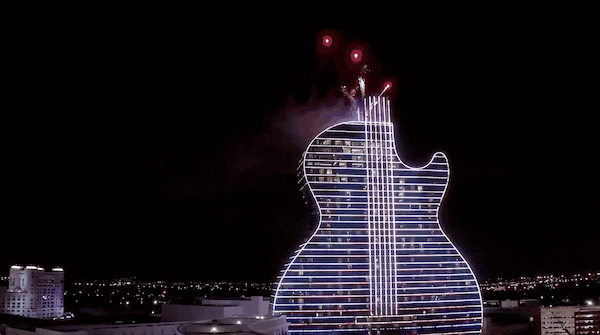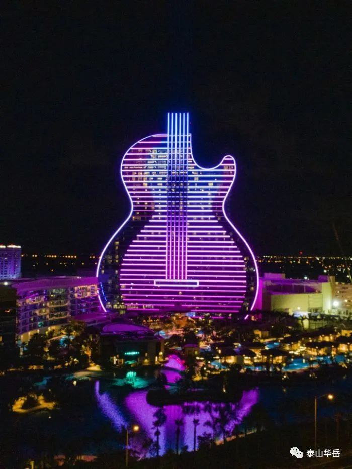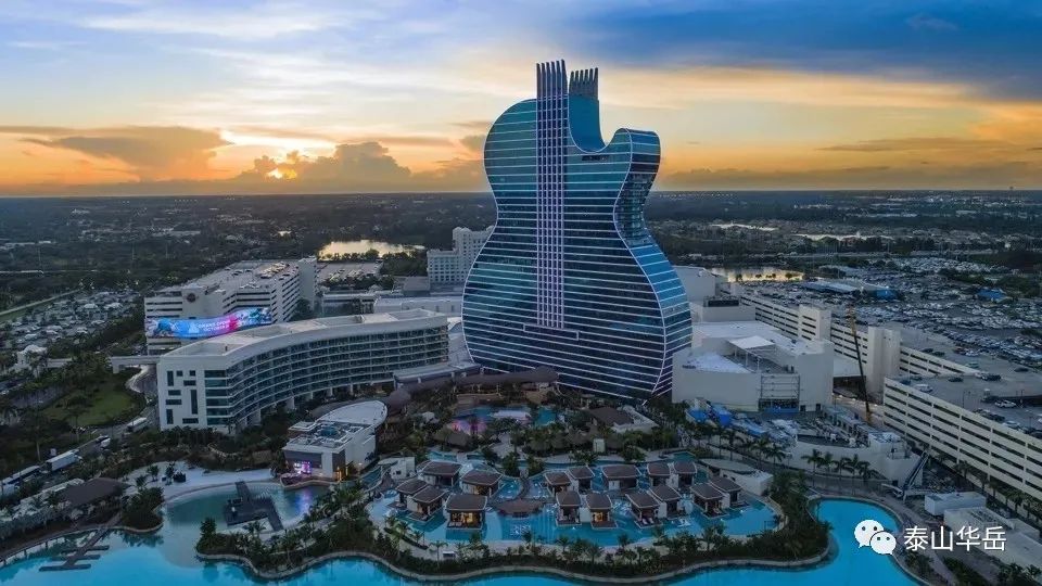 全球首栋吉他大厦位于佛罗里达州好莱坞的塞米诺尔硬石酒店及赌场是物业扩张的一部分,估计耗资15亿美元,共36层,这座400英尺高的吉他形酒店非常引人注目。