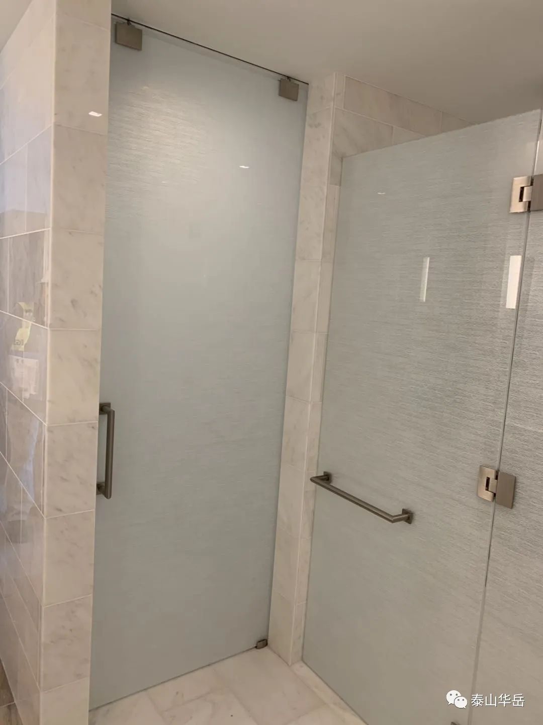 内装方面,酒店内所有内装隔断、淋浴房等均采用世界最新进的数码打印夹层玻璃,美观时尚,共计6000多平方,该数码打印玻璃均由我司(山东泰山华岳玻璃有限公司)加工生产。