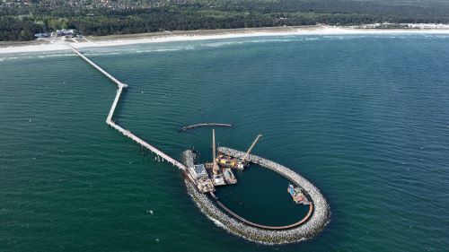 水上行走:波罗的海最长的码头目前正在建设中,从海滩延伸720米到达泪滴形状的岛屿港口