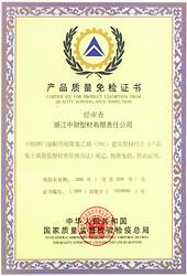产品质量免检证书