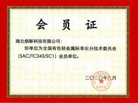 全国有色金属标准化分技术委员会证书 |