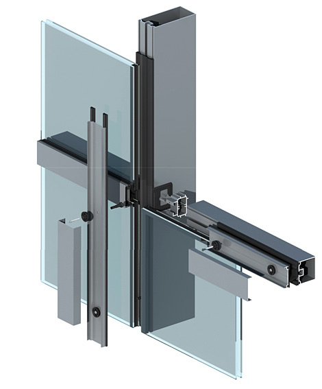 构件式幕墙是将车间内加工完成的构件,运到工地,按照施工工艺逐个将构件安装到建筑结构上,最终完成幕墙安装。构件式幕墙按照外视效果分为全隐式、半隐式、明框式、干法隐框幕墙四种,半隐式又分显横和显竖两种。按照装配方式分为压块式、挂接式两种。