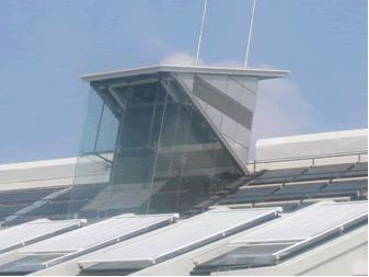 自然通风外墙又称为“被动式外墙”。双层玻璃幕墙的外层常常采用单层玻璃,内层采用夹层玻璃。空气间层中的通风是利用室外空气,通过自然通风的方式实现的。这是由于自然通风要利用风压作用和室外与空气间层内部的温差、外层表皮上的通风口等来形成热压作用( 烟囱效应) ,实现通风。 室外与空气间层内部有较大温差时,新鲜的室外空气通过外层玻璃下方的进风口进入空气间层。在空气间层中空气受阳光影响变热、上升,通过外层玻璃上方的排气口排出至室外,或通过内层玻璃上的通风口进入室内。空气间层内外温差越大,这种系统的通风效果越好。因此,利用烟囱效应进行自然通风的双层玻璃幕墙不适合用于炎热气候中。自然通风外墙还可以在高层建筑中采用。由于高层建筑受风荷载影响较大,双层幕墙的室内外两侧有较大的风压差。当外层玻璃与内层玻璃都开有通风口或窗时,室外空气将通过空气间层流入室内。但此时为了避免进入室内的空气气流速度过大,常常在外层玻璃的通风口处设置由中心计算机控制的可以机械调节的通风栅格以调整进风的气流速度。 在城市环境中,自然通风的采用可能要受到交通噪声和空气污染的影响,噪声可能会传至室内,室外的空气污染可能会降低室内的空气质量,这样的室内环境并不令人感到舒适。因此,自然通风外墙更适合用于气候温和的郊区,在那里室外空气通过空气间层进入室内,可以创造令人满意的室内环境。