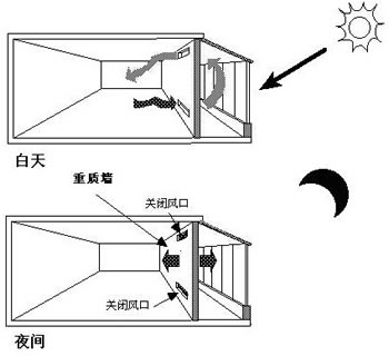 太阳能建筑的工作原理和特点 1、被动式太阳房 被动式太阳房最基本的工作机理是所谓“温室效应”。被动式太阳房的外围护结构应具有较大的热阻,室内要有足够的重质材料,如砖石、混凝土,以保持房屋有良好的蓄热性能。按采集太阳能的方式区分,被动太阳房可以分为以下几类: (1)直接受益式 冬天阳光通过较大面积的南向玻璃窗,直接照射至室内的地面墙壁和家具上,使其吸收大部分热量,因而温度升高。其示意图见图3-39所吸收的太阳能,一部分以辐射、对流方式在室内空间传递,一部分导入蓄热体内,然后逐渐释放出热量,使房间在晚上和阴天也能保持一定温度。采用这种方式的太阳房,由于南窗面积较大,应配置保温窗帘,并要求窗扇的密封性能良好,以减少通过窗的热损失。窗应设置遮阳板,以遮挡夏季阳光进入室内。 (2)集热蓄热墙式 这种太阳房主要是利用南向垂直集热蓄热墙吸收穿过玻璃采光面的阳光,通过传导、辐射及对流,把热量送至室内。椅的外表面涂成黑色或某种深色,以便有效地吸收阳光。集热蓄热堵的形式有:实体式集热蓄热墙,花格式集热蓄热墙,水墙式集热蓄热墙,相变材料集热蓄热墙,快速集热墙等。